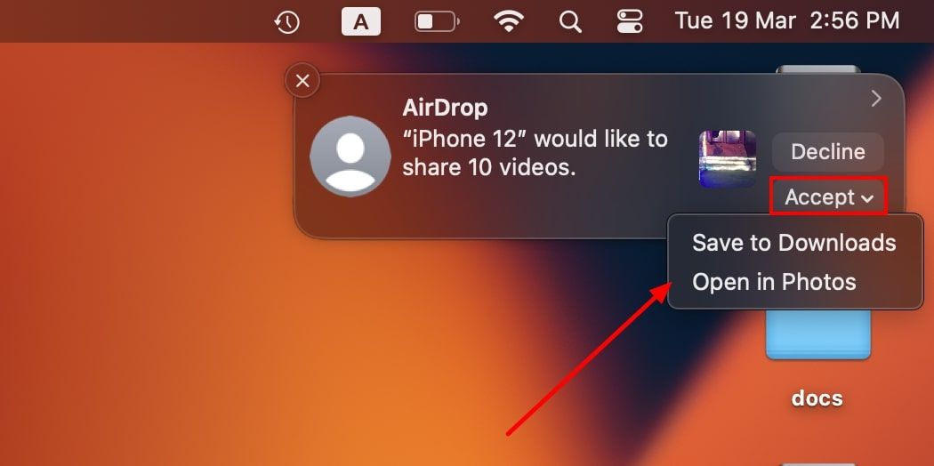 Step 2: Go to your Mac device and click the “Accept” button that appears as a pop-up. Then, you will see two options appearing as a drop-down list to choose one as desired.